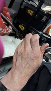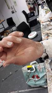 Arm repair – Brian Conley Projects Alginate mould, PU resin cast, Pu foam support in arm, fake nails, paint. Related